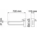 Uppfällbart väggmonterat armstöd för toalettstol. Låses automatiskt i uppfällt och nedfällt läge. Monteringsavstånd från centrum på toalettsists 300-350 mm. Fäste till toalettpappershållare köpes separat, se art. nr. 42895.