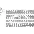 Självhäftande vinylbokstäver 5 st: E, 4 st: A, B, C, D, G, I, J, K, L, M, N, O, P, S, T, 3 st: F, H 2 st: Q, R, U, V, W, Æ, Ø, Å, &, X, Y, Z samt punkt och bindestreck utskurna på ark. För brevlådor och namnskyltar. Höjd 13 mm.
