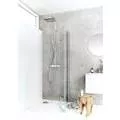 Vikbar duschdörr med klart glas som frigör yta och gör det möjligt att skapa en smart duschlösning för det lilla badrummet. Den vikbara dörren kan lätt fällas in mot väggen när den inte används och skapar en praktisk duschlösning även om WC eller badrmsmöbler är placerade nära duschen. Duschdörren är stabilt med en svart eller aluminiumfärgad väggprofil som kan monteras med skruv eller limbrickor. Den har en patenterad lösning för enkel installation och justering, Hafa's InstaQuickT. Duschdörren har lyftgångjärn för att den inte skall ta i golvet vid öppning och är vändbar så du kan välja vilken vägg den skall installeras på. Duschdörren kan kombineras med andra dörrar och väggar i IglooPro-serien. 6 mm härdat säkerhetsglas. Höjd 2000 mm. Kan monteras med utanpåliggande rör, 35 mm. 18 mm släplist ingår. Integrerat handtag.