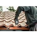Skruven är tillverkad av härdat kolstål med blankförzinkad ytbehandling och lackerad med polyesterpulver lack. Skruven har en EPDM tätning som ger ett vädersäkert montage. Den har en låg kullrig skalle med Ø 14,0 mm och är utformad så att EPDM gummit döljs vid iskruvningen. Denna huvudform ger ett estetiskt montage där man inte vill ha en synlig sexkantskalle. Skruven är försedd med TX bitsfäste. Bedömd i Sunda Hus med bedömning B. Vid montering skall skruven ej överdras, detta kan skada EPDM tätningen och kravet på ett vädersäkert montage äventyras.Rekommenderat varvtal: 1100-2500/min.