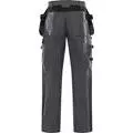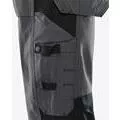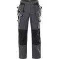 FAS® bomull / 2 löst hängande, undanstoppningsbara CORDURA®-förstärkta spikfickor - den ena med extra ficka, den andra med 3 mindre fickor och verktygshällor / 2 framfickor med öppning från sidan / 2 CORDURA®-förstärkta bakfickor med extra tygvidd / D-ring / 2 hammarhankar / Tumstocksficka - bekvämt placerad i sidan och lös i botten - med pennficka samt knapp och hälla för kniv / Benficka med telefonficka och dold id-kortsficka / Knäfickor i CORDURA® med öppning inifrån och reglerbar höjd av knäskydden / Godkänd enligt EN 14404 tillsammans med knäskydd 124292 (9200 KP) / OEKO-TEX® certifierad.