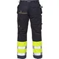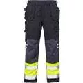 Multinorm / Inherent flamskydd / Smuts-, olje- och vattenavvisande / 2 löst hängande CORDURA®-förstärkta spikfickor som kan vikas in i framfickorna - den ena med 3 fickor och verktygshällor, den andra med extra ficka / 2 framfickor / 2 CORDURA®-förstärkta bakfickor, varav en med lock / D-ring vid linningen / Hammarhank / Benficka med lock och dold tryckknapp, telefonficka med lock och kardborrelås och D-ring / CORDURA®-förstärkt tumstocksficka med verktygsficka samt knapp och hälla för kniv / Förböjda ben / CORDURA®-förstärkta knäfickor, öppning inifrån och reglerbar höjd av knäskydden / CORDURA®-förstärkta benslut / Reflexerna är påsydda med 2-nålssöm / Godkänd enligt EN 61482-1-2 APC 1, EN 61482-1-1 ELIM: 9 cal/cm² (se ljusbågetabell för certifierade plaggkombinationer av EN 61482-1-2 klass 2 och EN 61482-1-1), EN ISO 11612 A1 A2 B1 C1 F1, EN 1149-5, EN ISO 20471 klass 1, EN 14404 tillsammans med knäskydd 124292 och tyget är godkänt enligt EN 13034 / Certifierad efter 50 tvättar / Testad för industritvätt enligt ISO 15797 / OEKO-TEX®-certifierad.