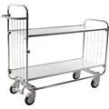 Art. nr: 005287948 EAN: 7350050356088 Lev. Art. nr: 187410105 KONGAMEK HYLLVAGN MED CENTRALLÅS 2 HYLLOR 1000X425MM (103472-) KONGAMEK HYLLVAGN MED CENTRALLÅS 2, 005287948 HYLLVAGN M.CENTRALLÅS 2H Läs mer Erbjudande! Välj tillval Hämta i butik Varberg: Kontrollerar lagerstatus Hyllplats: Falkenberg: Kontrollerar lagerstatus Hyllplats: Köp online Kontrollerar lagerstatus Beräknad leverans: Kontakta oss för prisuppgift. info@varbergstra.se | 0340 69 00 00 Moms ingår med Delbetala från Tidigare pris: Lägg i varukorgen Vid större beställningar behöver produkterna packas på pall, ev. pallkostnad tillkommer i efterhand. Pallarna kan efter användning returneras och delkrediteras. Se pallvarianter. HYLLVAGN MED CENTRALLÅS 2 Produktinformation Dokument Till toppen Produktinformation HYLLVAGN M.CENTRALLÅS 2H Flexibla hyllvagnar med centrallås. Lättkörd och tystgående vagn där hjulen låses med en pedal på kortsidan i 3 lägen, riktspärr, neutral och låst vilket gör vagnen väldigt flexibel och lättkörd. Finns i tre olika utförande och flera storlekar. Elförzinkade gavlar och hyllkanter. Hyllplanen i vit 12 mm laminat är steglöst ställbara i höjd. Grålackerat handtag kan fästas på önskad höjd. 4 centrallåsningshjul med precisionskullager i svängkrans och hjul, 125 mm. Till toppen Till toppen Dokument Till toppen Miljöinformation Till toppen EPD