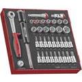 Art. nr: 006426278 EAN: 5020385011281 Lev. Art. nr: 238250104 HYLSNYCKELSATS 3/8 EVA TED3836 (74426-) TENG TOOLS HYLSNYCKELSATS 3/8 EVA TED3836, 006426278 36 delars Hylsnyckelsats med 3/8\" fyrkantsfäste. Teng Tools TED3836 Läs mer Erbjudande! Välj tillval Hämta i butik Varberg: Kontrollerar lagerstatus Hyllplats: Falkenberg: Kontrollerar lagerstatus Hyllplats: Köp online Kontrollerar lagerstatus Beräknad leverans: Kontakta oss för prisuppgift. info@varbergstra.se | 0340 69 00 00 Moms ingår med Delbetala från Tidigare pris: Lägg i varukorgen Vid större beställningar behöver produkterna packas på pall, ev. pallkostnad tillkommer i efterhand. Pallarna kan efter användning returneras och delkrediteras. Se pallvarianter. HYLSNYCKELSATS 3/8 EVA TED3836 Produktinformation Dokument Till toppen Produktinformation 36 delars Hylsnyckelsats med 3/8\" fyrkantsfäste. Teng Tools TED3836 36 delars 3/8" hylsnyckelsats innehållande 13 sexkantshylsor, 72 tänders spärrhandtag med vridplatta för omställning mellan vänster och högerdragning, universalknut, förlängningsstång 75 mm, skruvmejselhandtag 250 mm långt med 3/8"-fyrkantsfäste i båda ändar, reduceringstapp 1/2"- 3/8", samt bitshylsor i TX och sexkant. Levereras i inbyggnadslåda av plast med avtagbart lock. Verktygen ligger i EVA-skum i tre olikfärgade lager. Lådorna passar i Teng Tools verktygslådor och vagnar. Till toppen Till toppen Dokument Till toppen Miljöinformation Till toppen EPD