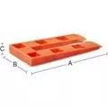 Kil av plast. Artikel 13195 består av 42 st kilar och klossar. ( 7 st gula klossar 100x22x5 mm, 7 st vita klossar 100x22x4 mm, 7 st röda 100x22x3 mm, 7 st svarta 100x22x2 mm och 7 st blå 100x22x1 mm). A=längd, B=bredd, C=höjd.