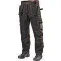 Kraftig bomull/polyester för bästa slitstyrka. Trenålssömmar för extra hållbarhet. Hängfickor, bakre benslut och knän förstärkta med Cordura. Två hängfickor, två framfickor samt två bakfickor. Invändiga knäskyddsfickor i två höjdlägen. Höger ben med knivhållare och tumstocksficka med pennfickor. Vänster ben har innerficka med dragkedja, ytterficka med lock, två telefonfickor, ID-kortsficka samt två pennfickor. Två hammarhankar. Material och gramvikt: 65% polyester, 35% bomull. 320 g/m2.