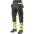 Smidig Hi-Vis-certifierad arbetsbyxa i klass 1 med god slitstyrka i huvudmaterial. Flera 4-vägsstretchpaneler för ökad rörlighet och skönare komfort. Byxan är utvecklad i nära samarbete med användare och utrustats med flera funktionella fickor för att du ska få de bästa förutsättningarna för din arbetsdag. Stretchig Canvasväv för god komfort och slitstyrka. 4-vägsstretch över front, gren samt ok bak för bra rörlighet och komfort. Smalare passform med hjälp av stretchpaneler samt stretch i huvudmaterialet ger en kroppsnära byxa med knäskydd som stannar i rätt position. Förstärkta knäskyddsfickor i Cordura ger extra slitstyrka. Förböjda knän för bättre passform och flexibilitet. Förstärkta hängfickor. Påstickade bakfickor med bälg i Cordura. Benficka med utvändig telefonficka. Tumstocksficka FlexiComb-reflexer med hög hållbarhet och innovativ design gör plagget följsamt och skönt att använda. Nedläggningsbar med 5 cm. Fickor och hållare: Två hängfickor och två framfickor. D-ring i höger fronthälla. Påstickade bakfickor. Knäskyddsficka i två höjder. Tumstocksficka. Benficka med dragkedja och telefonficka. Extra bred hälla bak. Material och gramvikt: 63% Polyester, 34% Bomull, 3% Elastan. 275g/m2. Certifierad enligt: EN ISO 20471:2013 Klass 1