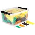 Uppregling av golv, fönster, dörrmontage m.m. underlättas med hjälp av kilar. Försedda med hakar så att kilarna kan skjutas in i varandra utan att glida isär. Färgen markerar olika storlekar. Blandade plastkilar förpackade i plastlåda med lock. Innehåll: 50stk 40x80x8mm orange 50stk 30x70x10mm grön 50stk 44x85x17mm brun 50stk 44x135x25mm gul
