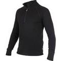 Halvhög krage med dragkedja. Mycket mjuk och behaglig merinoull för maximal värme. Polyester på insidan för bästa fukttransport. Förstärkta armbågar samt tumgrepp. Material och gramvikt: 50% merinoull, 50% polyester. 230 g/m2.