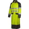 Flossad polyesterjersey för en torr känsla. Lätt och smidigt material med behaglig stretch för hög komfort Vattentät med sydda och svetsade sömmar. Ventilation i ryggen. Frontslå skyddar dragkedjan mot slitage och ger bra vindskydd. Reglerbart ärmavslut med tryckknappar. Knäppning nedtill skapar en droppkant för att hålla benen torra. Tvåvägs dragkedja. Extra hög krage. Huva i kragen. Reflexerna är följsamma och ger viss stretch. Längd 125 cm (strl L). Två sidfickor med lock med ID-kortsficka under höger ficklock. Material och gramvikt: 55% polyester, 45% PU. 3M-reflex. 170 g/m2. Certifierad enligt: EN ISO 20471:2013 XS Klass 2; S-> Klass 3, EN 343:2019 3,1,X