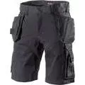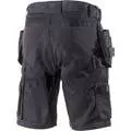 Stretchiga arbetsshorts med skön passform, hög kvalitet och avtagbara hängfickor. Modellen passar särskilt för arbete inom service, logistik, lager och industri, där man varken vill kompromissa med smidighet eller rörlighet. Shortsen ingår i produktserien No-Scratch där metalldetaljer är täckta och väl skyddade vilket förhindrar risken att repa känsliga ytor. Superstretchig Sorona-brandad twill med god slitstyrka. Corduraförstärkt 4-vägsstretch över stuss, front och gren för extremt bra rörlighet, komfort och luftighet. Smalare passform med hjälp av stretchpaneler samt stretch i huvudmaterialet ger en kroppsnära shorts. Hängfickor förstärkta med Cordura. Frontfickor Infällda stolpfickor bak. Benficka med utvändig telefonficka. Tumstocksficka.  Fickor och hållare: Två avtagbara hängfickor med kardborrefäste. Två framfickor. Stolpfickor bak. Tumstocksficka. Benficka med utvändig telefonficka försedd med magnetlås. Material och gramvikt: 52% Polyester, 30% Bomull, 18% Elastomerer. 250 g/m2.