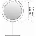 Sminkspegel med bordsstativ. Spegeln har 5 gånger bildförstoring. Spegeldiameter 167 mm, med ram 200 mm. LED-belysning i ramen som lyser upp detaljerna i spegeln. Belysningen drivs med medföljande USB-kabel eller med batterier, ingår ej.