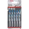 Art. nr: 001634748 EAN: 3165140007313 Lev. Art. nr: 2608631017 BOSCH STICKSÅGBLAD T127D 5ST (26769-) BOSCH STICKSÅGBLAD T127D 5ST, 001634748 Sticksågsblad T 127 D Läs mer Erbjudande! Välj tillval Hämta i butik Varberg: Kontrollerar lagerstatus Hyllplats: Falkenberg: Kontrollerar lagerstatus Hyllplats: Köp online Kontrollerar lagerstatus Beräknad leverans: Kontakta oss för prisuppgift. info@varbergstra.se | 0340 69 00 00 Moms ingår med Delbetala från Tidigare pris: Lägg i varukorgen Vid större beställningar behöver produkterna packas på pall, ev. pallkostnad tillkommer i efterhand. Pallarna kan efter användning returneras och delkrediteras. Se pallvarianter. STICKSÅGBLAD T127D 5ST Produktinformation Dokument Till toppen Produktinformation Sticksågsblad T 127 D Snabba snitt i aluminium - T 127 D Special for Alu sticksågblad gör snabba, raka snitt i metall. Dess valsade tandgeometri med sidotandning och stora, ovala spånrum är utformad för snabba snitt. Bladets fullt härdade, högvärdiga snabbstål är lämpligt för sågning i aluminium och järnfri metall. Det har medelstor tandutformning (3,0 mm) och sågar aluminiumplåt med tjockleken 3-15 mm samt aluminiumrör och -profiler med diameter upp till 30 mm. För användning med sticksågar med T-skaftsystem för fasthållning. Passar alla sticksågar med T-skaft. Ämnen: HSS Tandutförande: skränkt, fräst Total längd [mm]: 100 Tandning [mm]: 3,0 Användningsområde: Tunnplåt till grovplåt (3-15 mm), rör + profiler (Ø <30 mm) Rekommenderad min. materialtjocklek (mm): 3 Rekommenderad max. materialtjocklek (mm): 15 Max. skärförmåga (mm): 30 Typ: T 127 D . Snabba snitt i aluminium. T 127 D Special for Alu sticksågblad gör snabba, raka snitt i metall. Valsad tandgeometri med sidotandning och stora, ovala spånrum, utformad för snabba snitt. Fullt härdat, högvärdigt snabbstål är lämpligt för sågning i aluminium och järnfri metall. Medelstor tanddelning (3,0 mm) för sågning i 3-15 mm tjock aluminiumplåt, aluminiumrör och -profiler, diameter ? 30 mm Till toppen Typ Sticksågblad Användningsområde Tunnplåt till grovplåt (3-15 mm), rör + profiler (Ø <30 mm) Ämnen HSS Tandning skränkt, fräst Tandning (mm) 3 Totallängd (mm) 100 Till toppen Dokument Till toppen Miljöinformation Till toppen EPD