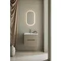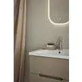 Tvättställsskåp Hafa Clay har en behaglig mörk beige kulör med praktiskt integrerat grepp i mjukt rundad form. Mjukstängande lådor med fullutdrag ger bra överblick över innehållet. Köp till tvättställ, blandare, bottenventil, vattenlås samt eluttag.